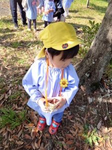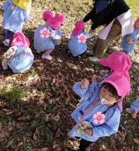 秋の遠足(2歳・3歳児組) 2025年10月30日 10月29日(水)に2歳・3歳児組が遠足に出かけました。 とても良いお天気となり、公園の遊具であそんだり、どんぐりを拾ったり、楽しい時間を過ごすことができました。