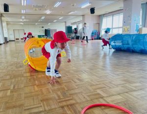 障害物リレー(年少組) 2026年3月24日 年少組さんが障害物リレーを行った様子です。 ・・・・・・・・・・・・・・・・・・・・・・・・・・・・・・・・・・・・・・・・・・・・ 年長さんに向けて作ったアーチをみんなで見ているところです。